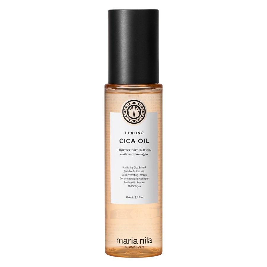Maria Nila Healing Cica Oil er en vektløs, men dypt nærende hårolje som gir håret glans, mykhet og styrke – uten å tynge. Den er spesielt utviklet for fint hår og sensitive hodebunner, og etterlater et naturlig, sunt resultat med silkemyk finish.